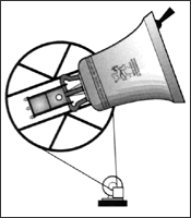 Gehen sie zur Glocke und stellen sich seitwärts im 90 Grad Winkel zur Glockenschwingung. Schauen sie auf die Oberkante des Seilrades und fixieren sie einen Punkt dahinter z.B. ein