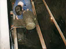 Fertig montiert im Turm, mit angekröpfter Aufhängung der Glocke und Balanceklöppel. Die Schalluken konten wieder eingesetzt werden und es ist im Turm wieder trocken. Zu